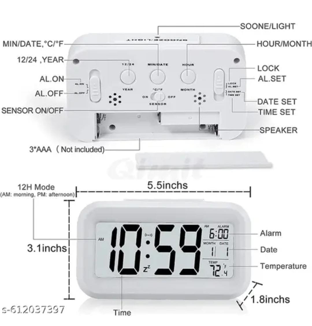 Be the first to review “Digital Alarm Clock, Table Clock with Automatic Sensor,Date and Temperature Display, Compact Desk Clock for students,Home,Office,Bedroom,Living Room, Home Decor, Corporate Use (white Digital)” Cancel reply