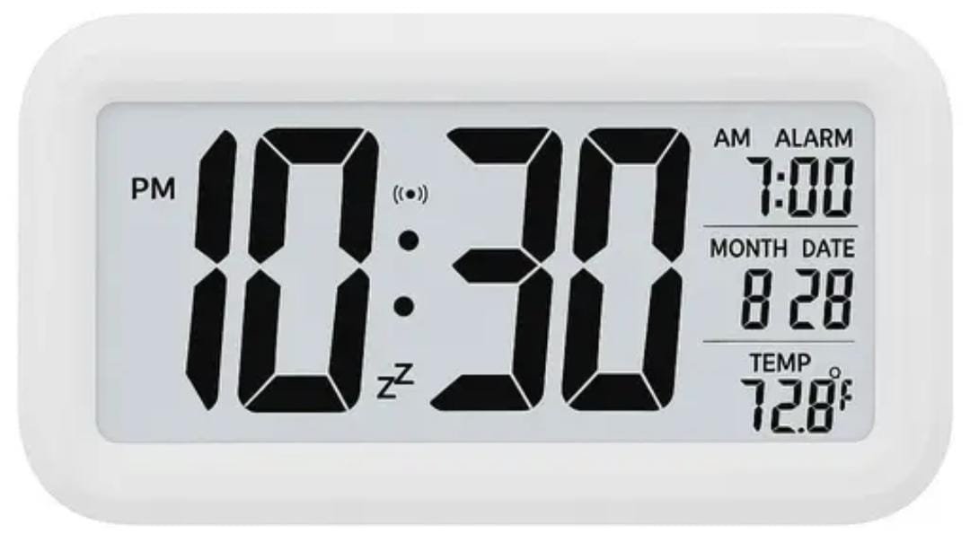 Digital Alarm Clock, Table Clock with Automatic Sensor,Date and Temperature Display, Compact Desk Clock for students,Home,Office,Bedroom,Living Room, Home Decor, Corporate Use (white Digital)