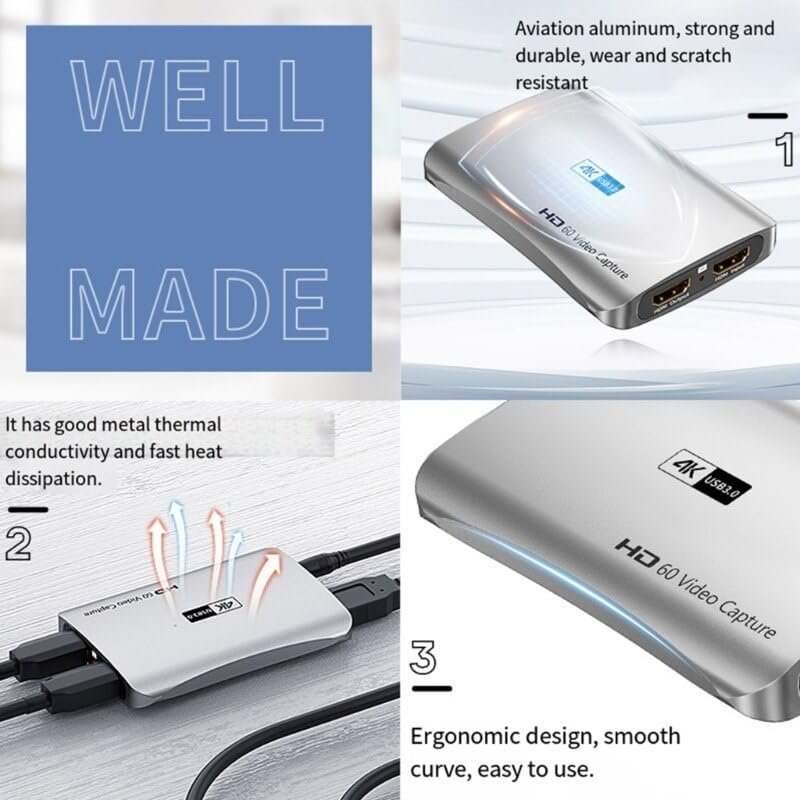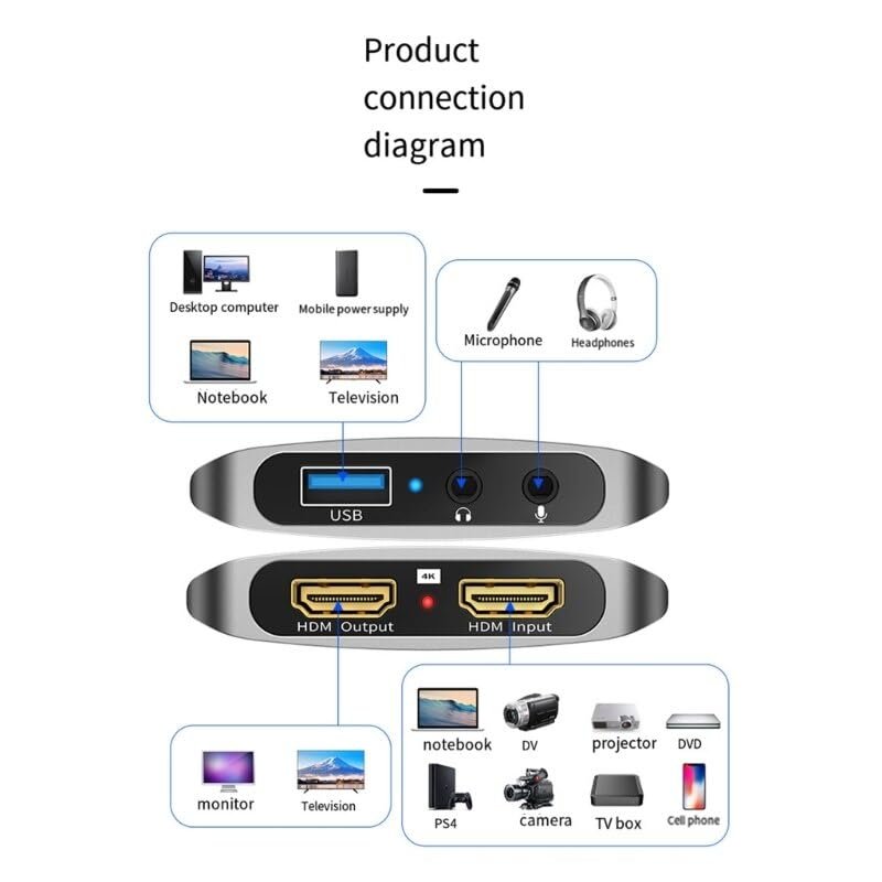 ETZIN Audio Video Capture Cards 1080p 60fps, 4k HDMI Capture Card, USB 3.0 Game Capture Card for Live Streaming Video Conferencing Teaching 3ds PS4 PS5 PC Xbox One Camera OBS (EPL-1022HVC) [AA1102/228]