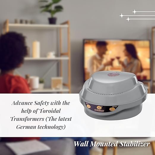 Everest ABS Body EPS 50-N Voltage Stabilizer for Refrigerator Up to 310 liters with LED Indicator | Working Range : (130 V to 290 V) | Capacity: 2 A | 5 Years Warranty – Grey Colour Fridge Stabilizer (AA1104/149)