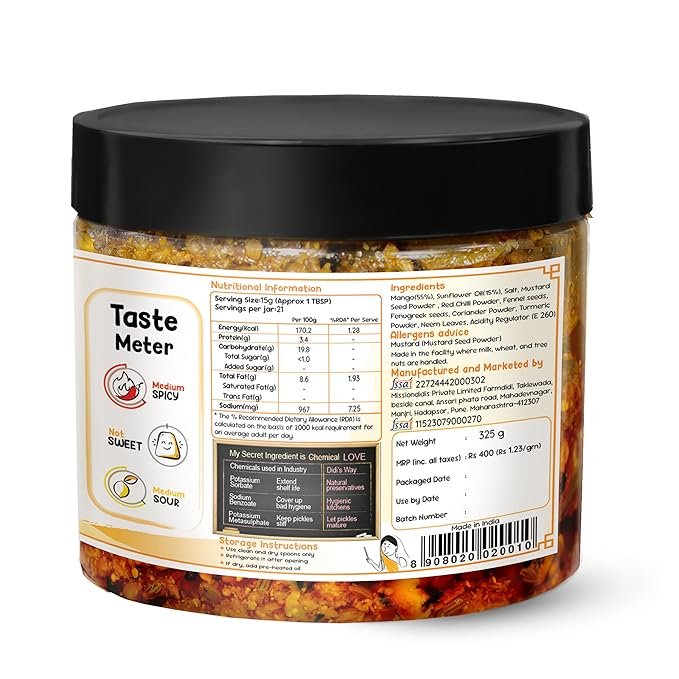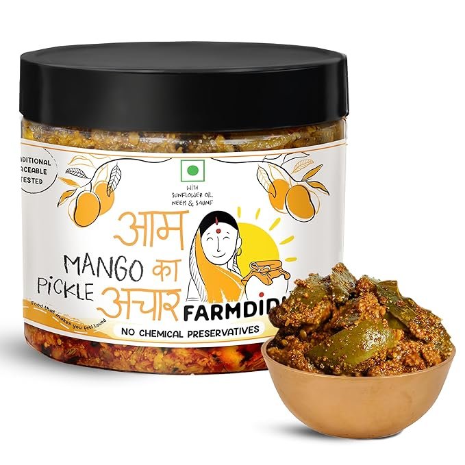 Be the first to review “FarmDidi Mango Pickle 325g | Homemade Traditional Indian Achar | Less Oil Aam ka achar home made Pickle in fresh | Dry Sukha Aam Ka Achaar made with Organic Methods & Preservative free (AA1104/261)” Cancel reply