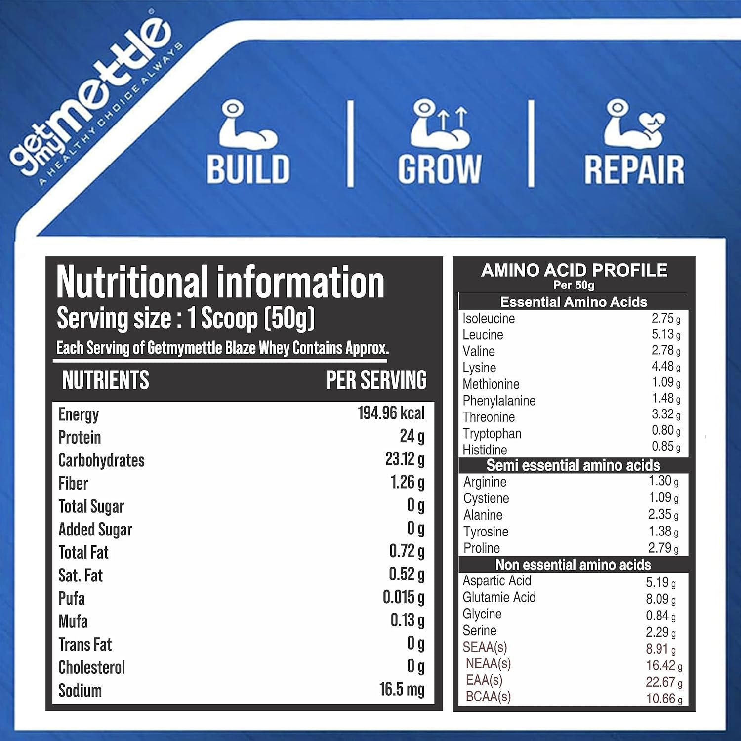 Be the first to review “Getmymettle Blaze Whey Protein 4Kg Cold Coffee | 24g Protein, 10.66g BCAA, 8.09g Glutamine – 100% Natural Whey for Lean Muscle Growth & Recovery”
