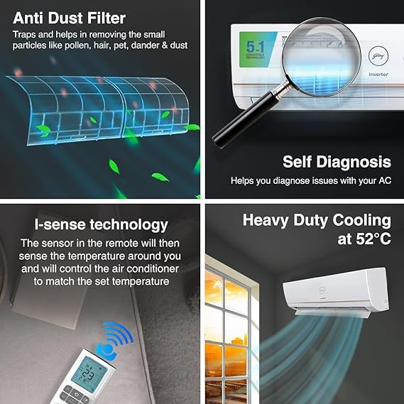 Be the first to review “Godrej 1 Ton 3 Star, 5 Years Comprehensive Warranty, 5-In-1 Convertible Cooling, Inverter Split AC (Copper, I-Sense Technology, AC 1T EI 12TINV3R32-GWA Split, White) [AA1096/17]” Cancel reply