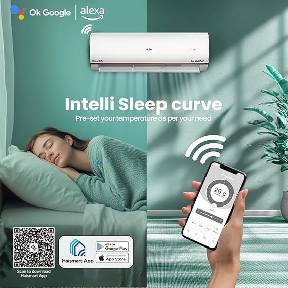 Be the first to review “Haier 1.5 Ton 4 Star Triple Inverter Smart Split AC (5250 Watts, Copper, Wi-Fi, 4-Way Swing, 7 in 1 Convertible, Frost Self Clean, HD Filter, Cools at 60°C – HSU18K-PYFR4BN-INV, White) [AA1096/22]” Cancel reply