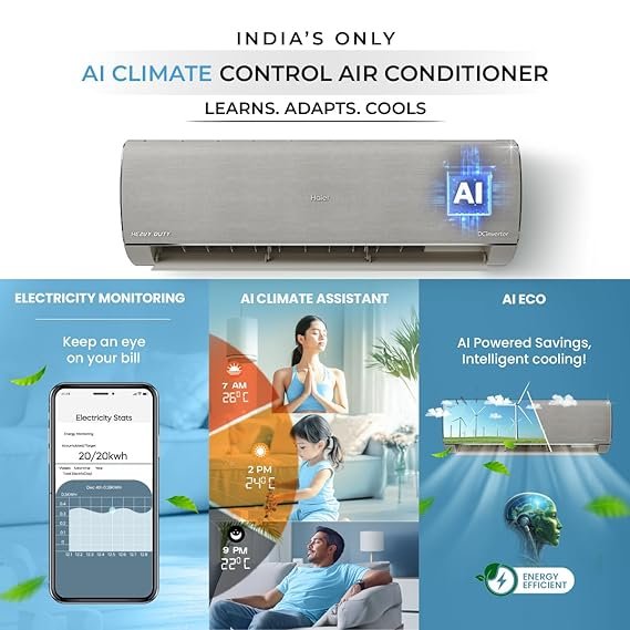 Be the first to review “Haier Gravity Series 1.6 Ton 5 Star AI Climate Control Smart Split AC (5460 Watts, HEXA Inverter, Copper, Fabric Finish, HSU19G-MZAIS5BN-INV,Moonstone Grey) [AA1096/27]” Cancel reply