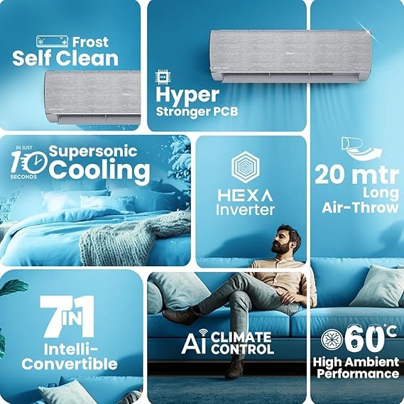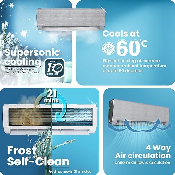 | Special Feature | 4 Way Swing, Anti Bacterial Filter, Auto Clean, Dehumidifier, WiFi Enabled |