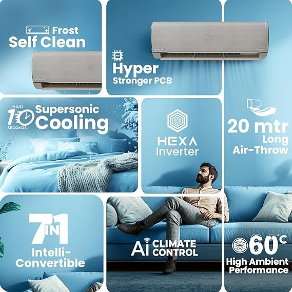 ![51PRvQRP51L._SX569_ Haier Gravity Series 1.6 Ton 5 Star AI Climate Control Smart Split AC (5460 Watts, HEXA Inverter, Copper, Fabric Finish, Wi-Fi, 4-Way, HD Filter, Cools at 60°C-HSU19G-MZAIM5BN-INV, Morning Mist) [AA1096/28] - Image 1](https://edisonkart.in/wp-content/uploads/2026/02/51PRvQRP51L._SX569_.jpg)