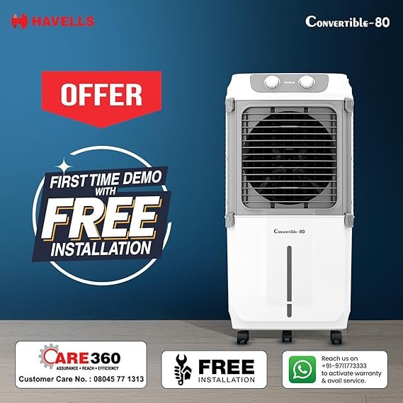 Be the first to review “Havells 2-in-1 Convertible 80 L Desert Air Cooler for room| Dual functionality & easy storing| Can be used as side table| 5 Leaf Metal Blade Fan| Powerful Air-Delivery| Bacteria shield honeycomb pads” Cancel reply