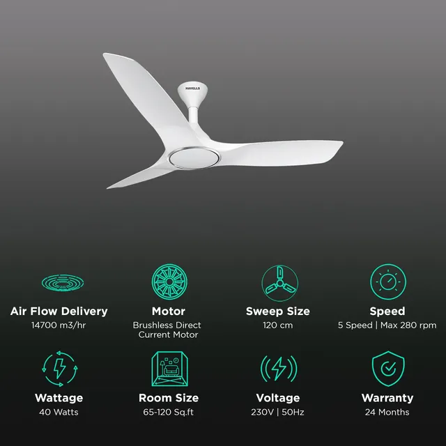 HAVELLS Stealth Air 5 Star 1200mm 3 Blade BLDC Motor Ceiling Fan with Remote (Double Ball Bearing, Pearl White)