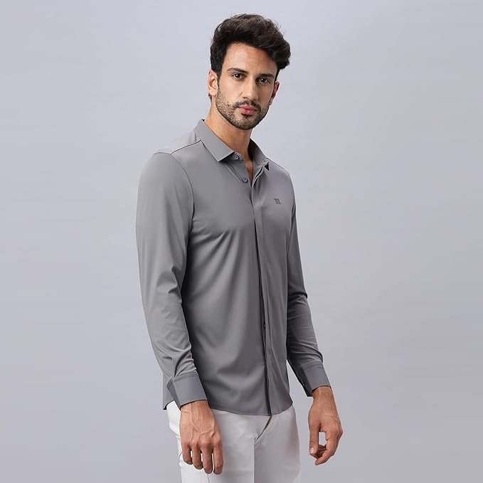 HEKTOR Men’s Hidden Button Shirt–Long Sleeve Twill Textured Shirt|Regular Fit,Premium Nylon Blend,Minimalist [AA1102/107]