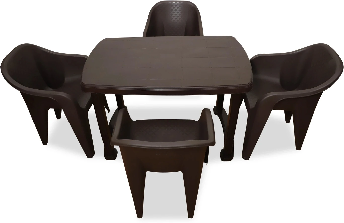 HELLO 4 Seater Dining Table Set for Home Garden Cafeteria Plastic 4 Seater Dining Set (Finish Color -Dark Brown, DIY(Do-It-Yourself))[AA1098/99]