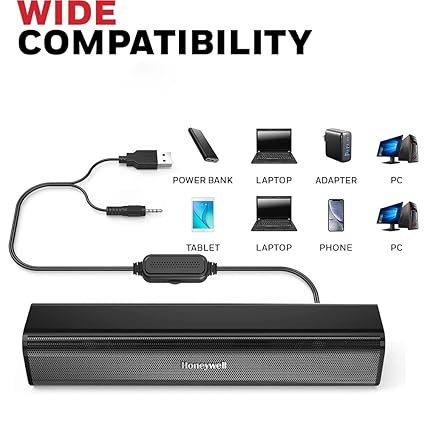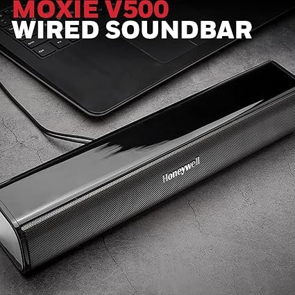 Honeywell Moxie V500 10W Portable USB Wired Soundbar, Speaker for PC,Desktop and Laptop with Volume Control and 3.5 mm AUX,2.0 Channel,52mmX2 Drivers,Plug &Play,2 Yrs Maufacuturer Warranty (AA110/121)