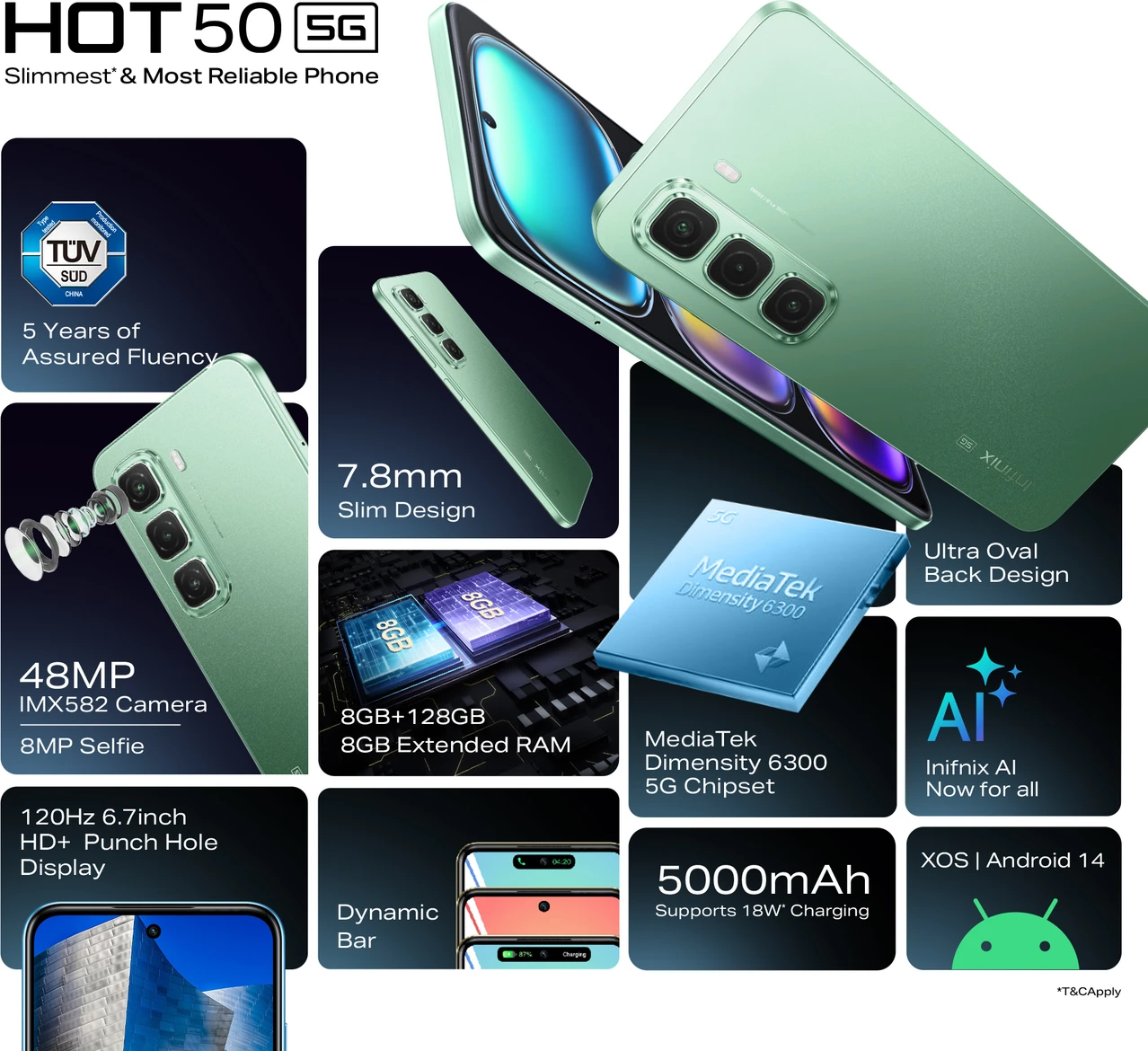 Hot 50 5G (Sage Green, 128 GB) (8 GB RAM) [AA1102/295]