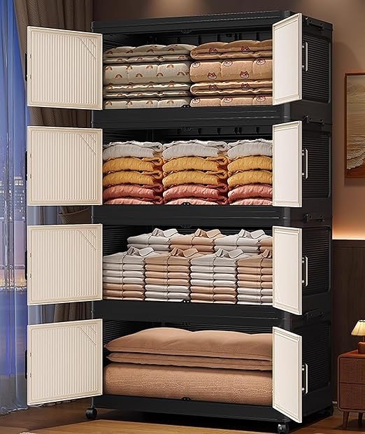 Be the first to review “House of Quirk Multi-Tier Foldable Storage Box with Wheels | Durable Plastic Wardrobe Organizer for Clothes, Bags, Toys & Living Room Storage (Black/Beige, 5 Layer, 62cm) (AA1104/202)”