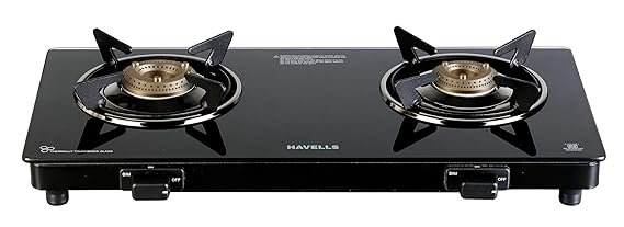 Haute Evoque Series 2.0 Black 4 Burner Manual Ignition Glass Gas Stove |8mm Atom Glass || Door Step Service | 5 years warranty on Burner, Glass, Valves By Haute Home