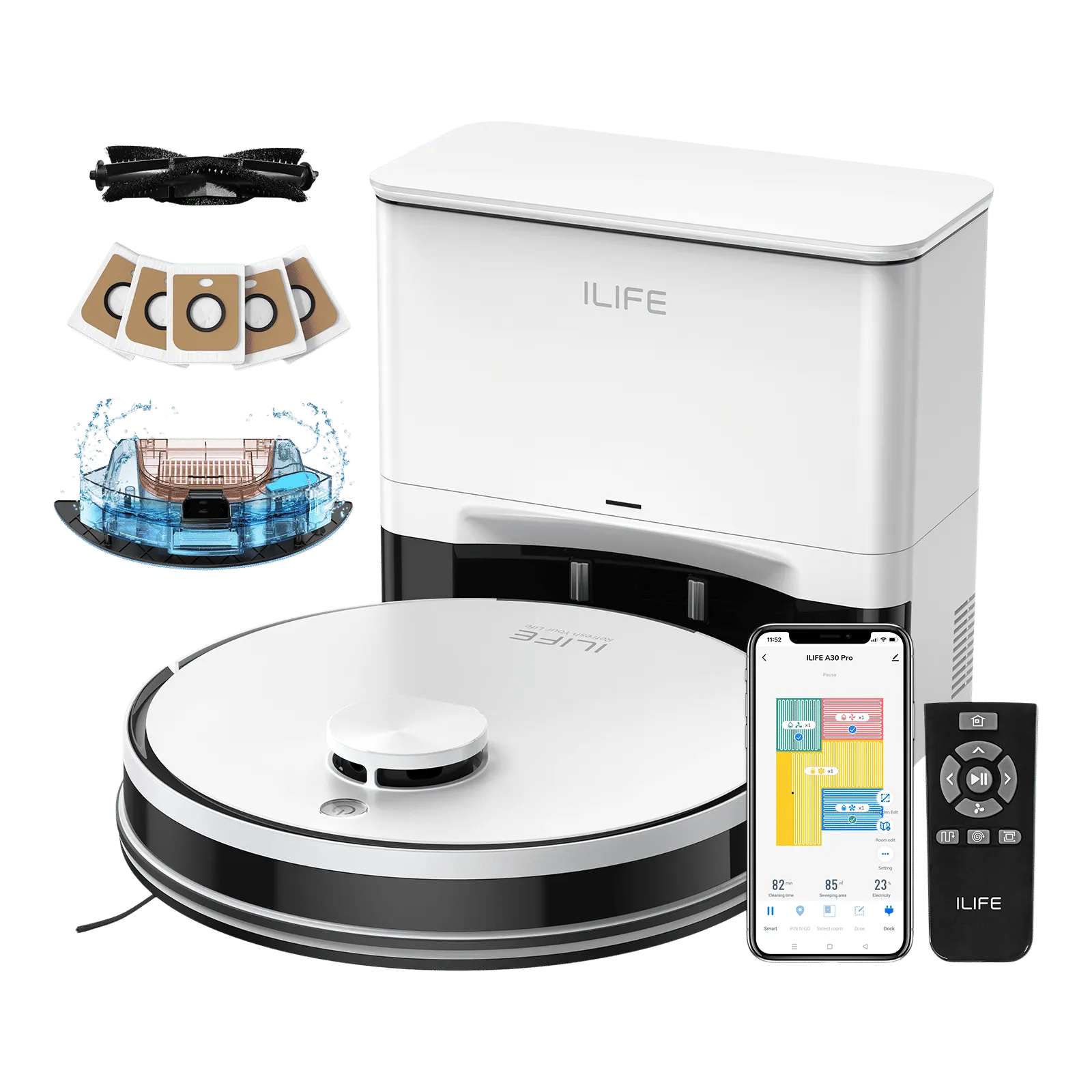 ILIFE A30 Pro Robotic Vacuum Cleaner & Mop with Self-Empty Station (Alexa & Google Assistant, White)