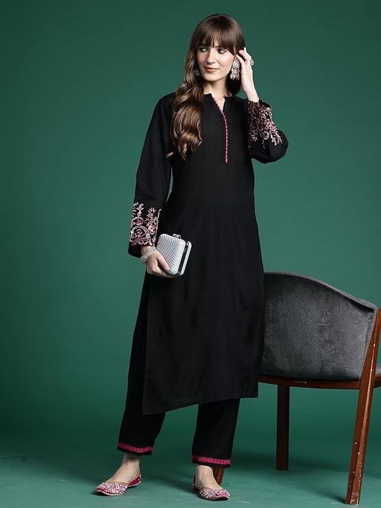 Be the first to review “INDO ERA Women’s Straight Cotton Blend Ethnic Motifs Embroidered Kurta & Pant Set (KS9BK10495)” Cancel reply