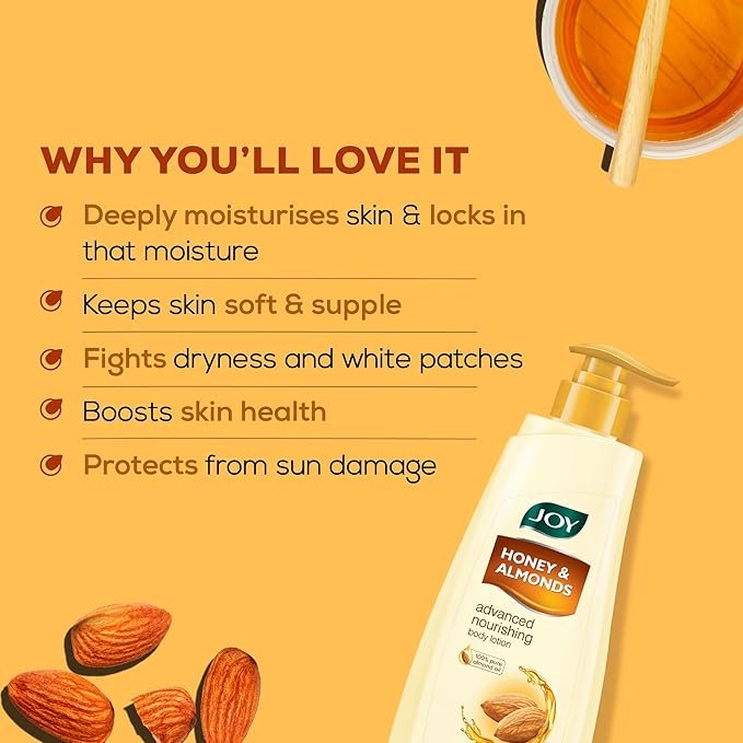 Joy Honey & Almonds Advanced Nourishing Lightweight Winter Body Lotion 750ml | Enriched With Shea Butter | Natural Sunscreen Filters | 48 Hour Moisture, Suitable for Normal to Dry Skin
