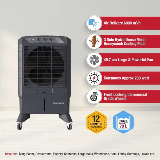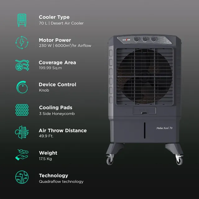 KENSTAR Mahakool HC 70 Litres Desert Air Cooler with Quadra Flow Technology (Inverter Compatible, Grey)