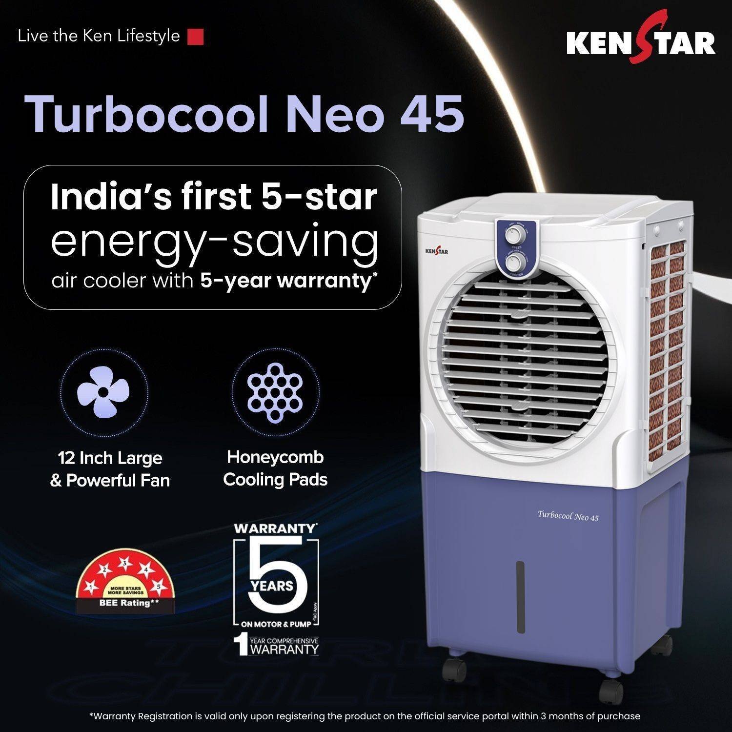 Kenstar Visit store 45 L Room/Personal Air Cooler 5 BEE Star Rated (White & Blue, TURBOCOOL NEO HC 45)[AA1097/120]