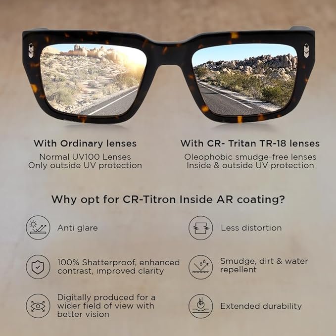 - PREMIUM LENS TECHNOLOGY: Shisen Fox OKINAWA Square Sunglasses are equipped with CR Tritan TR-18 lenses in vintage-inspired tints. These lenses are not only stylish but also practical, featuring an anti-reflective coating and providing 100% UVA and UVB protection. Enjoy superior clarity, reduced glare, and UV defense with these high-quality lenses.