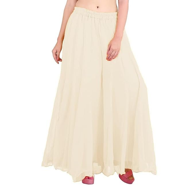 Kicha Regular Loose Fit Solid Colour Georgette Flared Sharara Mid Rise Palazzo for Women (Off-White-Small)