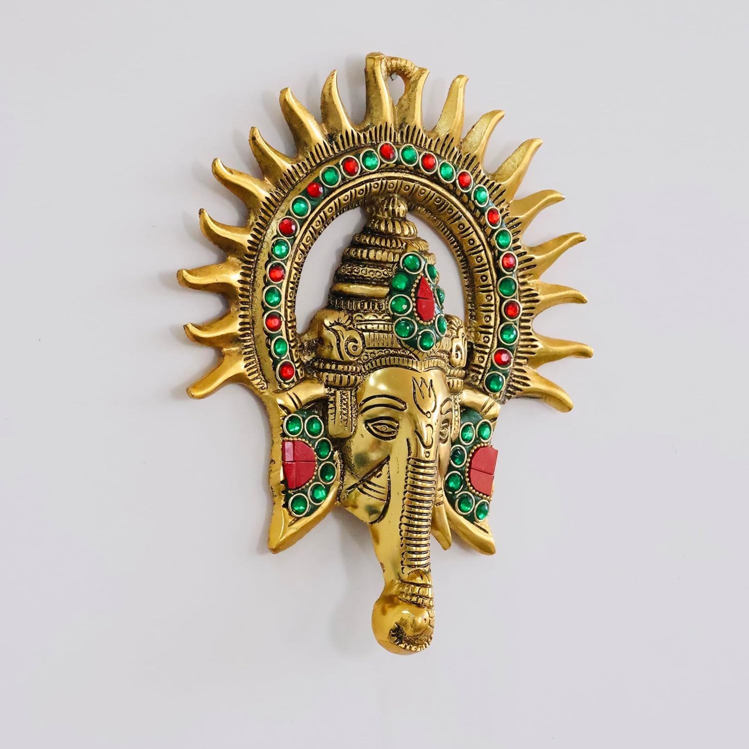 KridayKraft Ganesha Idol with Surya Chakra – Ganesh murti Wall hangings Rajasthani Handicrafts Decorative Showpiece for Gifting Anniversary Valentine’s Day (Golden)(AA1103/103)