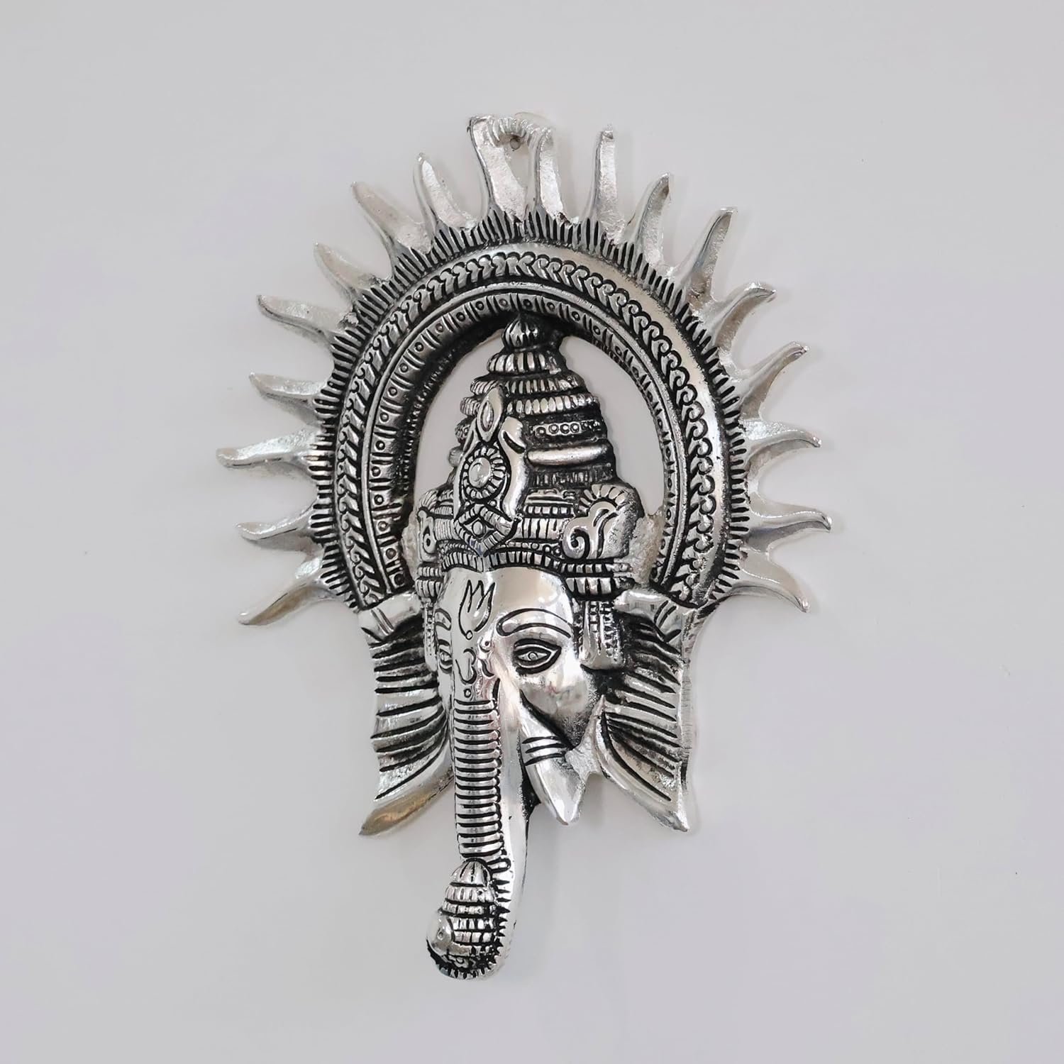 KridayKraft Ganesha Idol with Surya Chakra – Ganesh murti Wall hangings Rajasthani Handicrafts Decorative Showpiece for Gifting Anniversary Valentine’s Day (Silver)(AA1103/104)