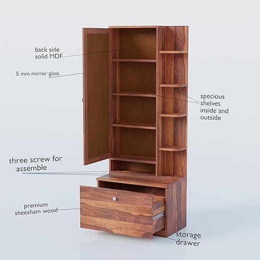Krishna Wood Decor Sheesham Wood Dressing Table with Mirror, 175 x 44 x 40 cm, Single Door, Storage Drawer, Brown (Honey Finish) (AA1104/228)