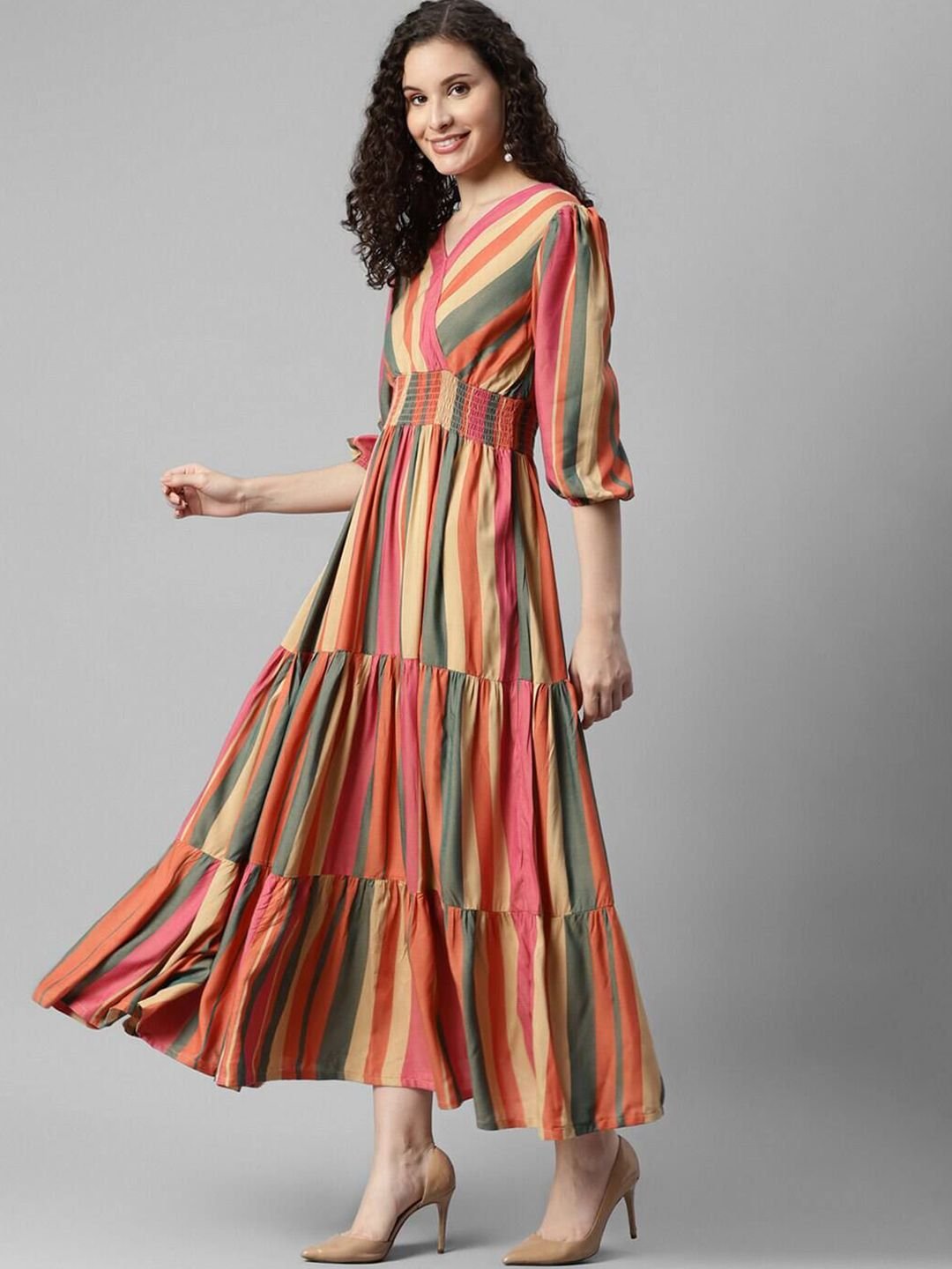 Pink, Beige & Orange Anarkali kurta for Women