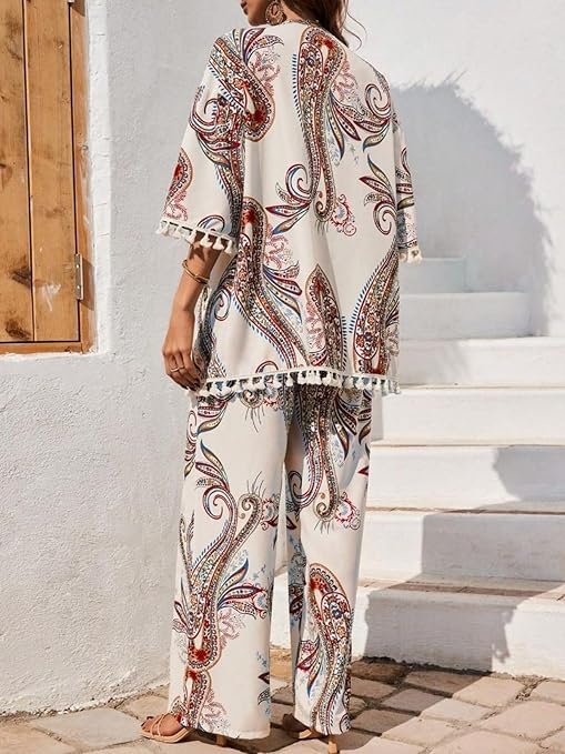 Leriya Fashion Co Ord Set for Women Stylish | Summer Travel Co-Ord Set Short Sleeve Shirt & Wide-Leg Pant | Paisley Printed Stylish Casual Outfit for Summer Cord for Women | Dress for Woman