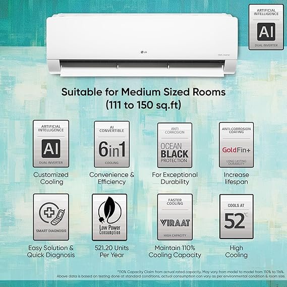 LG 1.5 Ton 5 Star DUAL Inverter Split AC (Copper, AI Convertible 6-in-1 Cooling, 4 Way, HD Filter with Anti-Virus Protection, Faster Cooling & Energy Saving, TS-Q19YNZE, White)(Non Wi-Fi Split AC – 2024) [AA1096/4]