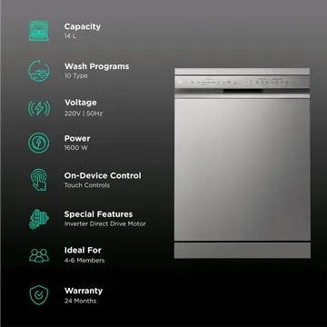 LG 14 Place Settings Free Standing Dishwasher with Inverter Direct Drive (Silver) Extra off upto Rs.3500