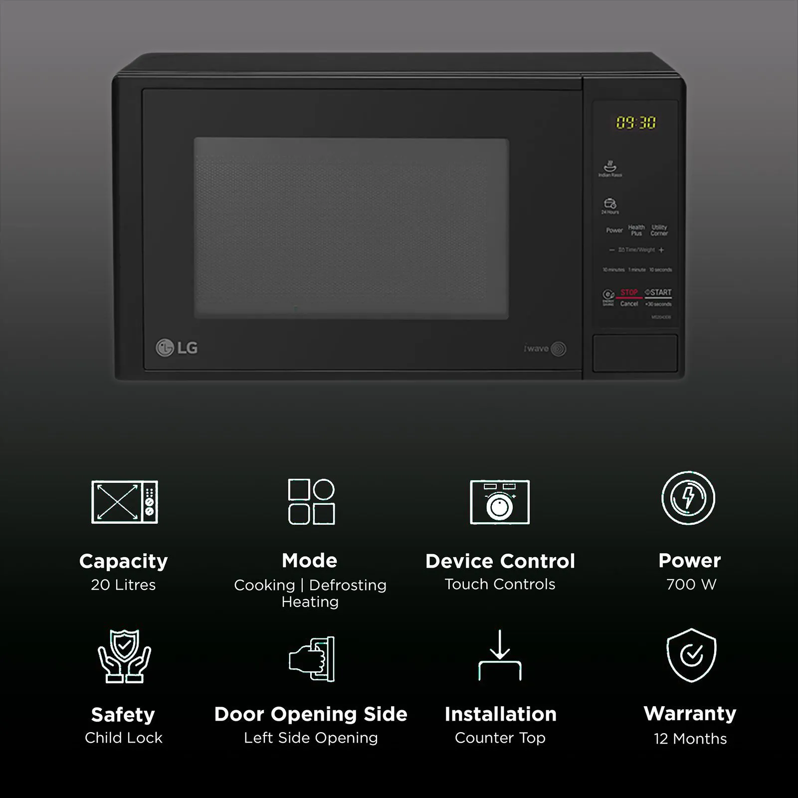 LG 20L Solo Microwave Oven with 44 Autocook Menus (MS2043DB.DB1QILN, Black)