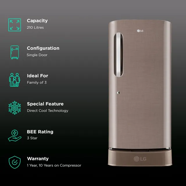 LG 210 Litres 3 Star Direct Cool Single Door Refrigerator with Stabilizer Free Operation (GL-D231AFSD, Fawn Steel)