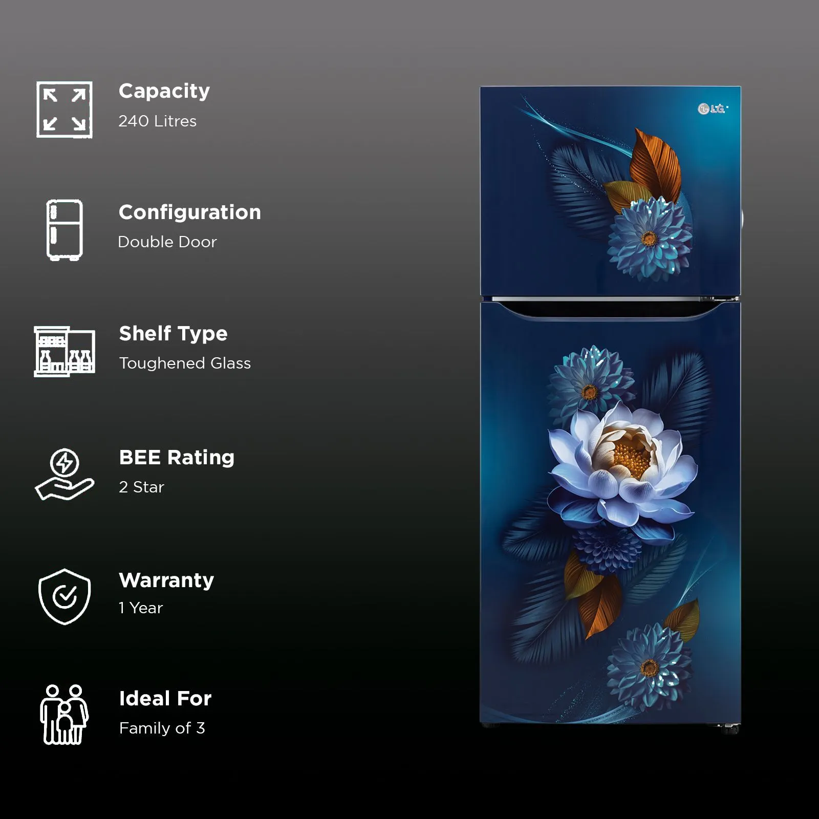 Be the first to review “LG 240 Litres 2 Star Frost Free Double Door Convertible Refrigerator with Smart Diagnosis (GL-S292SBWY, Blue Water Lily)” Cancel reply