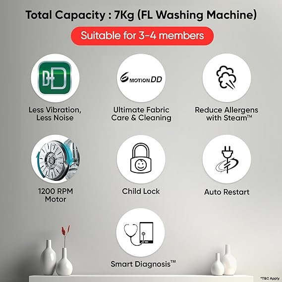 LG 7 Kg, 5 Star, Direct Drive Technology, Steam Wash, 6 Motion DD, Fully-Automatic Front Load Washing Machine (FHB1207Z2M, Allergy Care, In-Built Heater, Touch Panel, Middle Black)