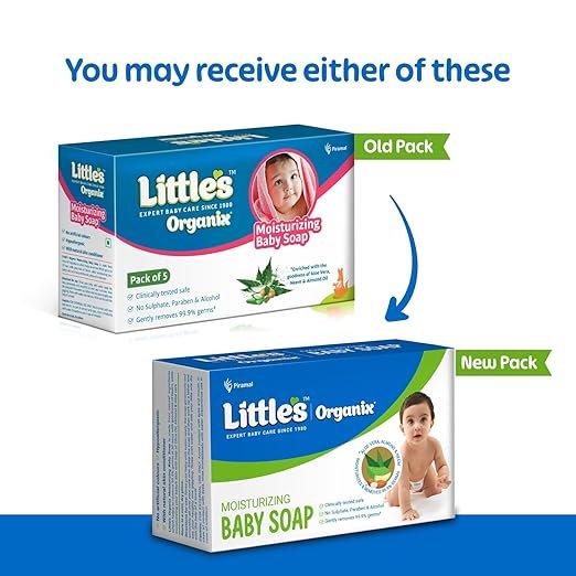 Little’s Organix Baby Soap | 75g x Pack of 5 | Gentle Moisturizing Bar | Hypoallergenic & Dermatologically Tested for Baby’s Sensitive Skin | No Nasties | Protects from 99.9% Germs | Kids Soap (AA1104/40)