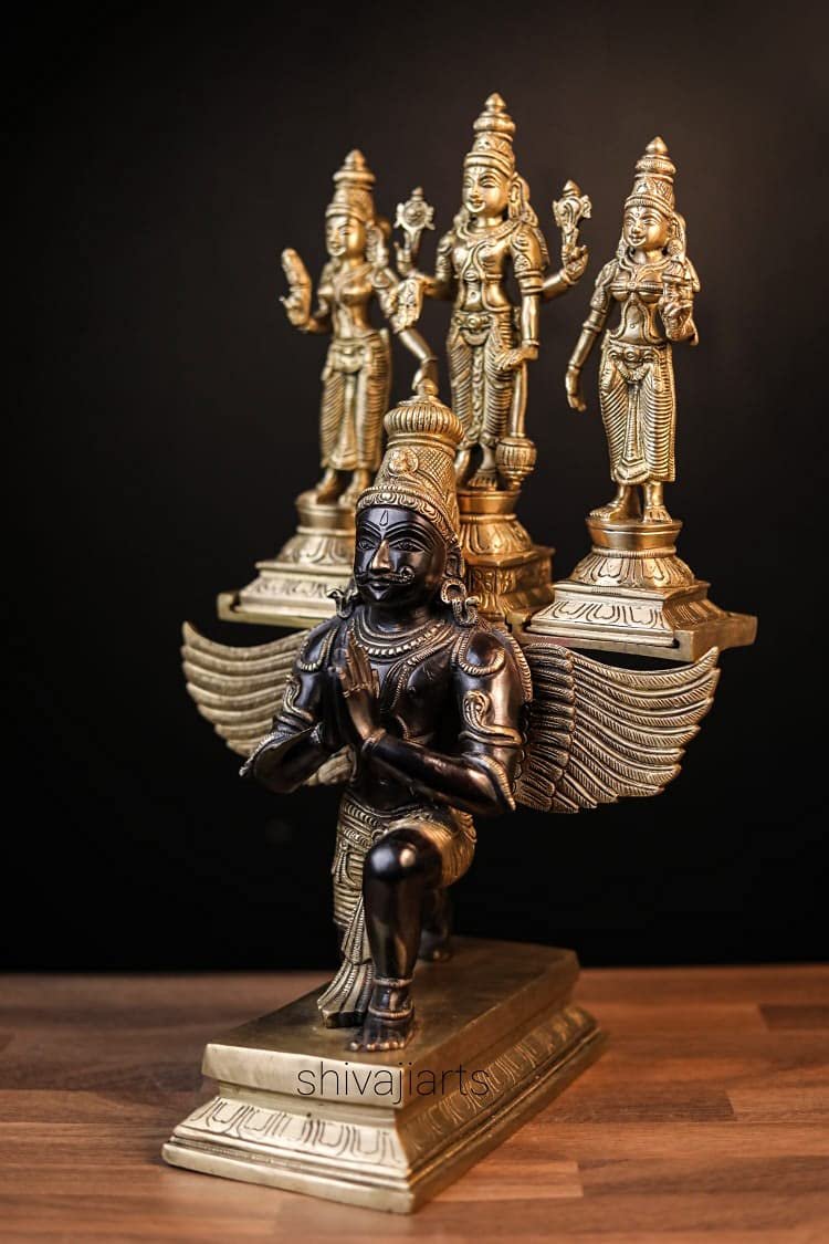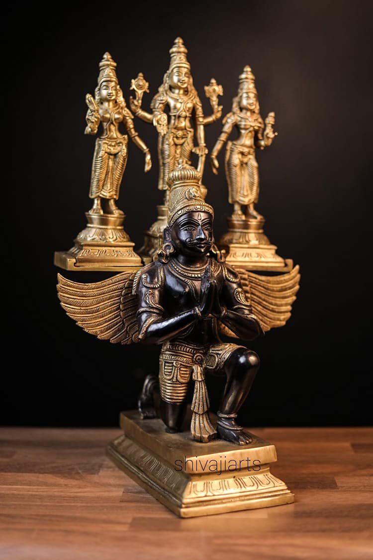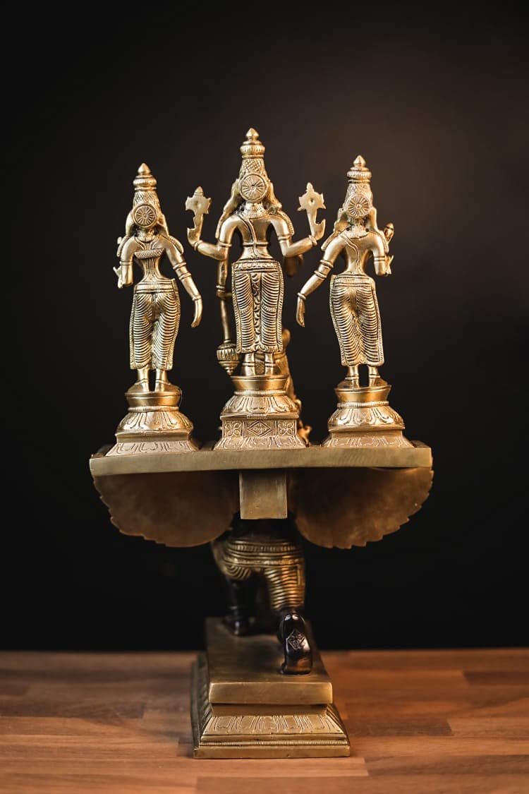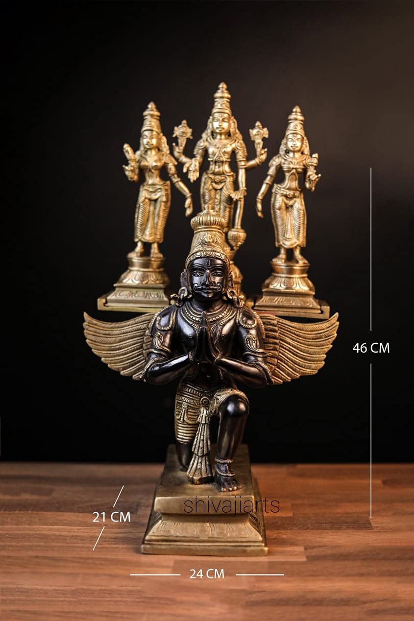 Lord Vishnu on Garuda with Bhudevi & Sridevi Brass Idol, Laksminarayana Statue for Home Decor(AA1103/110)