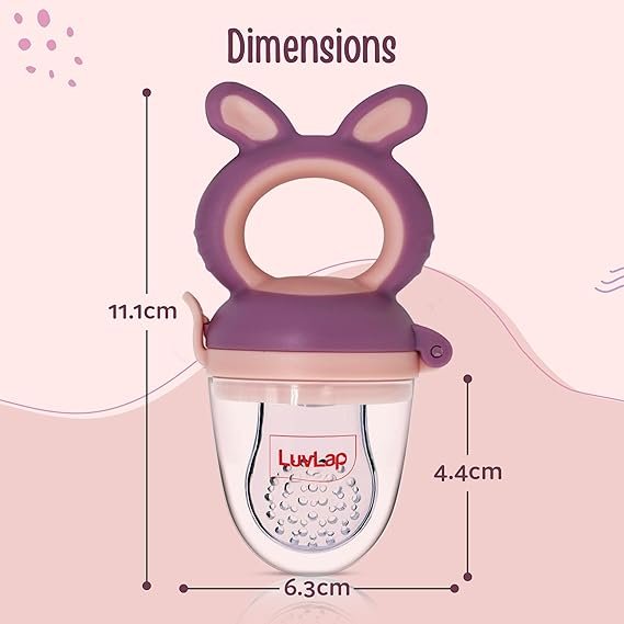 LuvLap Silicone Food/Fruit Nibbler with Extra Mesh, Soft Pacifier/Feeder, Teether for Baby, Infant, Bunny Violet & Pink