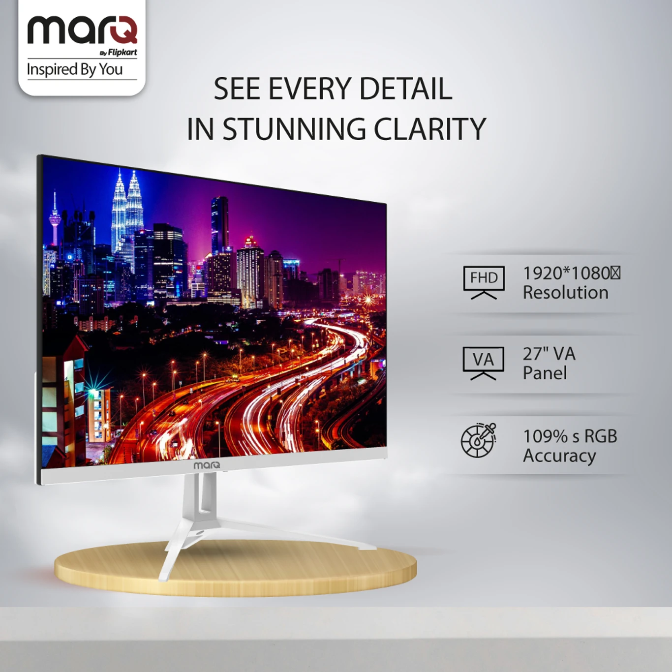 MarQ by Flipkart 68.58 cm (27 inch) Full HD LED Backlit VA Panel Monitor (27FHDMEQNNXO) ( Response Time: 1 ms,100 Hz Refresh Rate) [AA1102/173]