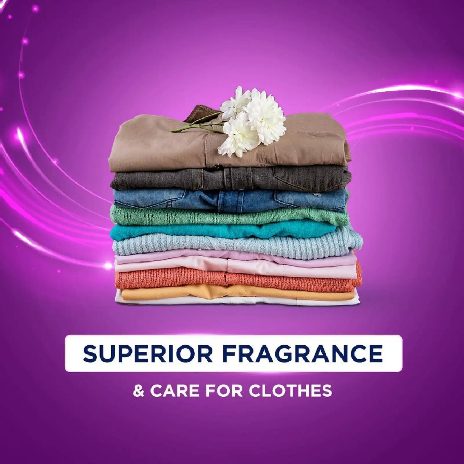 Key Features: Tough stain removal in washing machines; Faster stain removal with powerful cleaning technology; Easy and better dissolution with no residue; Machine care with controlled foam to prevent clogging and scaling; Superior fragrance; Color care retains original fabric color.