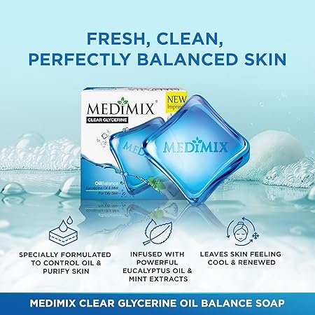 Be the first to review “Medimix Clear Glycerine Oil Balance Bathing Bar Soap for Oily Skin 100g (3 + 1 Combo Pack) | Infused with Eucalyptus Oil & Mint” Cancel reply
