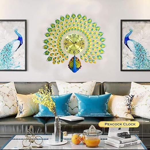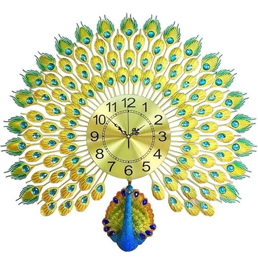 Metal Peacock Decorative Luxury Farmhouse Birds Theme Analog Wall Clock (Peacock_Wall_Clock_32,15Wx105Lx17H Inches, Multicolour) (AA1104/207)