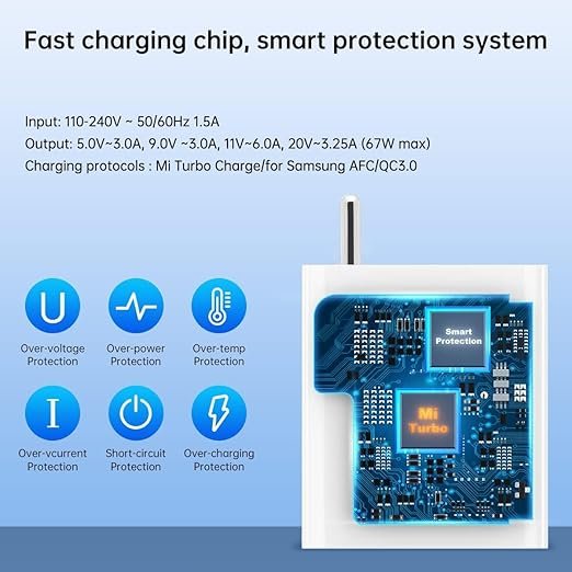 Mi-Original 67W Sonic Charge Fast Charger with Type C Cable for Redmi Note 12 pro max/Note 1pro/Note 9 / Poco M2 Pro/Note 7 pro/Note 9 Pro/Note 8 Charger with 6 Month Warrant (AA1102/12)