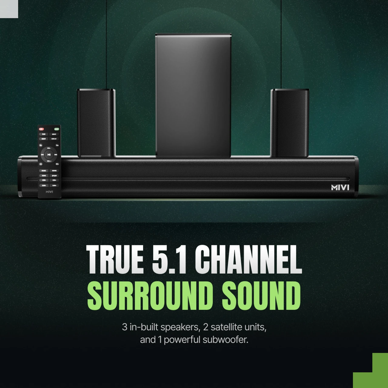 Mivi Visit store Mivi Fort Sonic 400 Soundbar, 5.1 Channel, Multi-Input and EQ Modes, BT v5.3 400 W Bluetooth Soundbar (Black, Silver, 5.2 Channel)