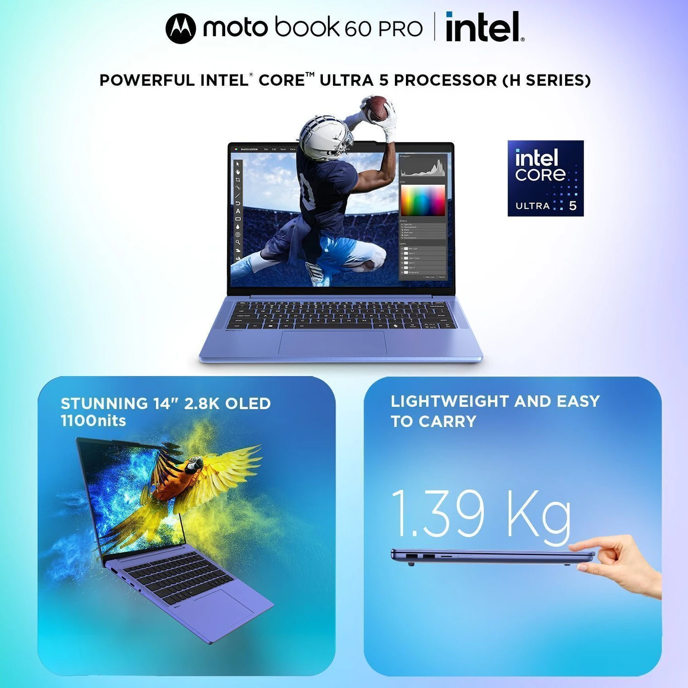 MOTOROLA Motobook 60 Pro Full Metal OLED AI PC Intel Core Ultra 5 225H -(16 GB/1TB SSD/Windows 11 Home) Motobook 141AH101 Thin and Light Laptop (AA1104/81)
