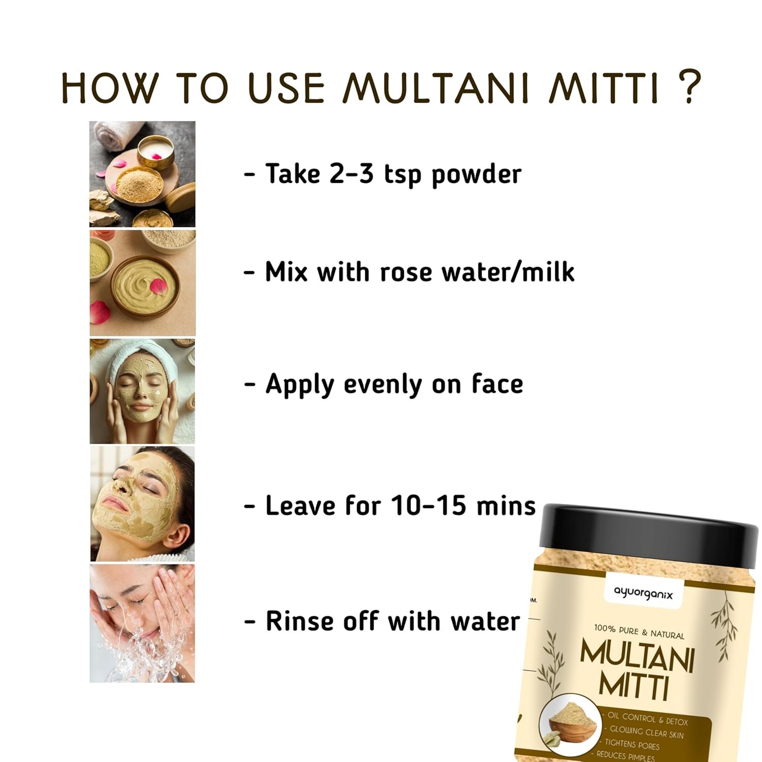 | Product Benefits | Anti Acne, Dark Circles, Oil Control, Tan Removal |