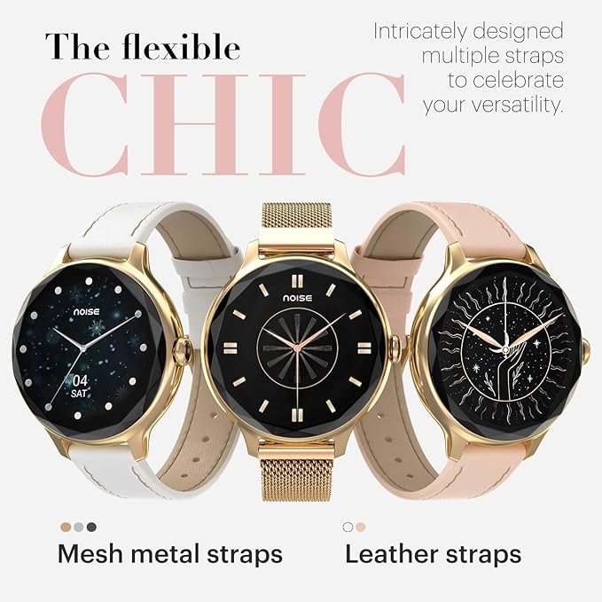 Noise Diva Smartwatch with Diamond Cut dial, Glossy Metallic Finish, AMOLED Display, Mesh Metal and Leather Strap Options, 100+ Watch Faces, Female Cycle Tracker smart Watch for Women (Rose Pink)[AA1100/166]