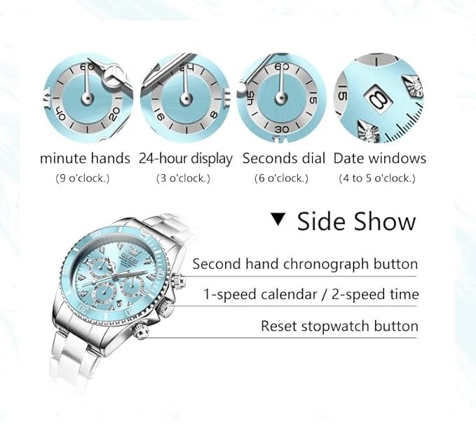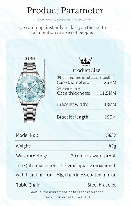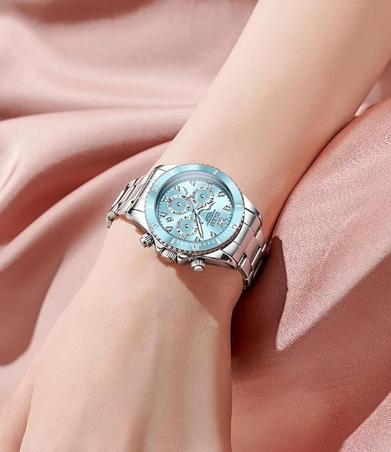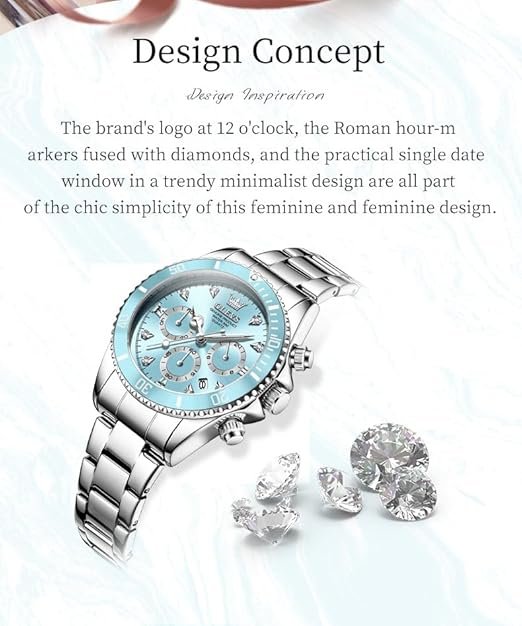 Be the first to review “OLEVS Watch for Women Luxury Stylish Diamond Analog Quartz Chronograph Elegant Silver Stainless Steel Chain Waterproof Date Ladies Wrist Watch” Cancel reply